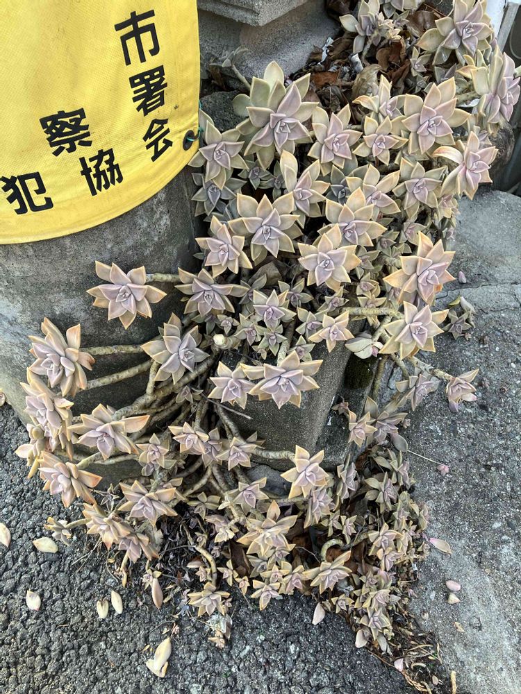 アスファルトの隙間に根付いたようです。今のような多肉植物ブーム以前からある普及種ですよね。