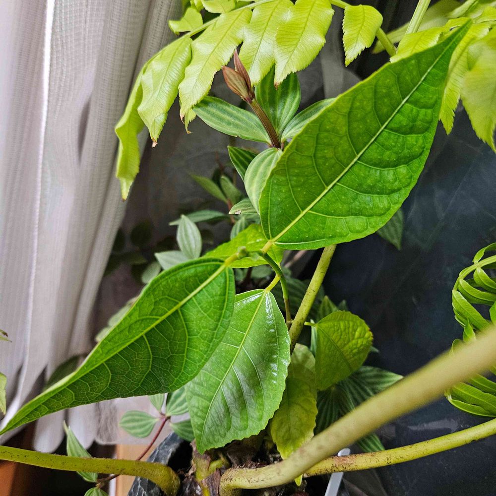 後ろに見えるリュウビンダイ🌿の鉢から…カサカサの葉っぱ🌿が出てきてザラザラした質感です。