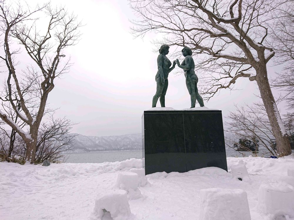 夕方のスタート前に 十和田湖畔を散策❄️🥾🥾🥶