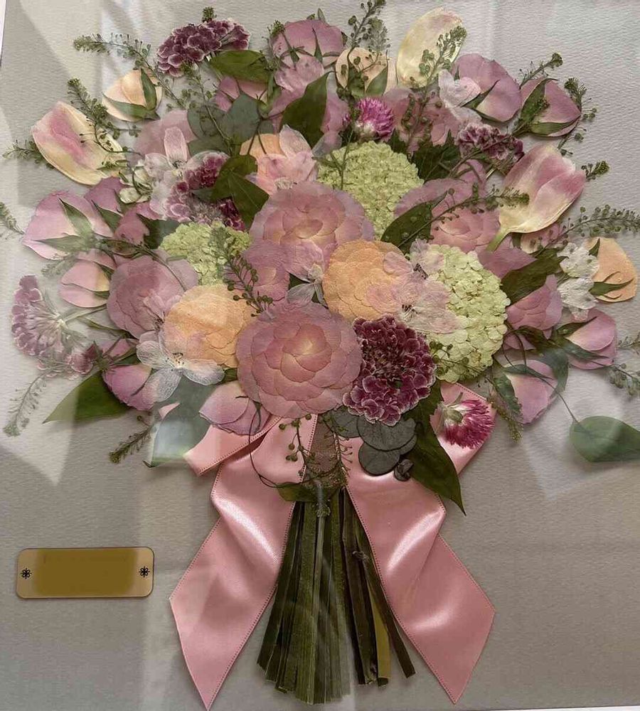 息子がプロポーズの時に渡した花束を💐プロの方がアフターブーケとして、押し花にしてくれたんよσ(^_^;)