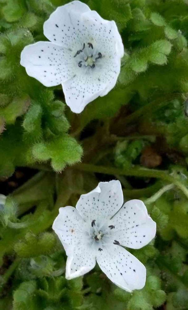 白いネモフィラさん、黒のテンテン模様がオシャレな花びらですね♡♡♡