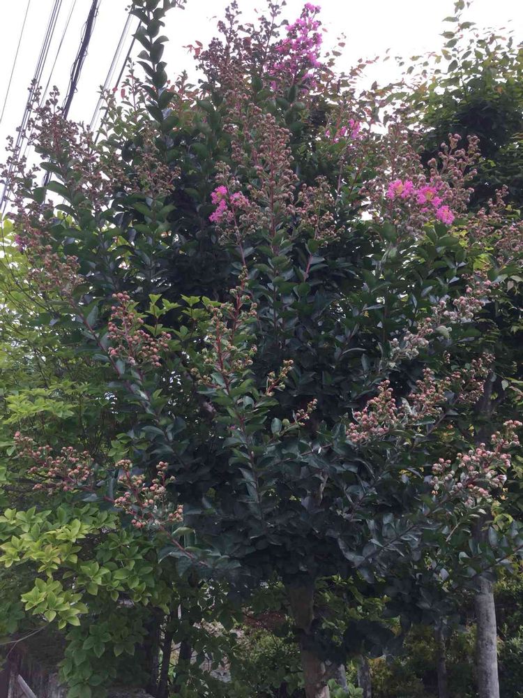 2本ある百日紅のうちの1本です。庭の樹木で花をつける木では花梨と同じくらい背が高いですね。この辺りは県北なのですが、るりそうさんのお住まいの地域ではどうですか❓もう咲いてます⁉️