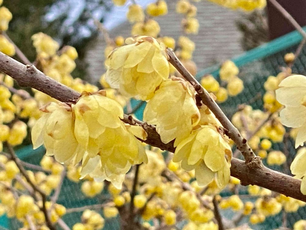 ほとんどが下向きに咲いている蝋梅のお花🌼