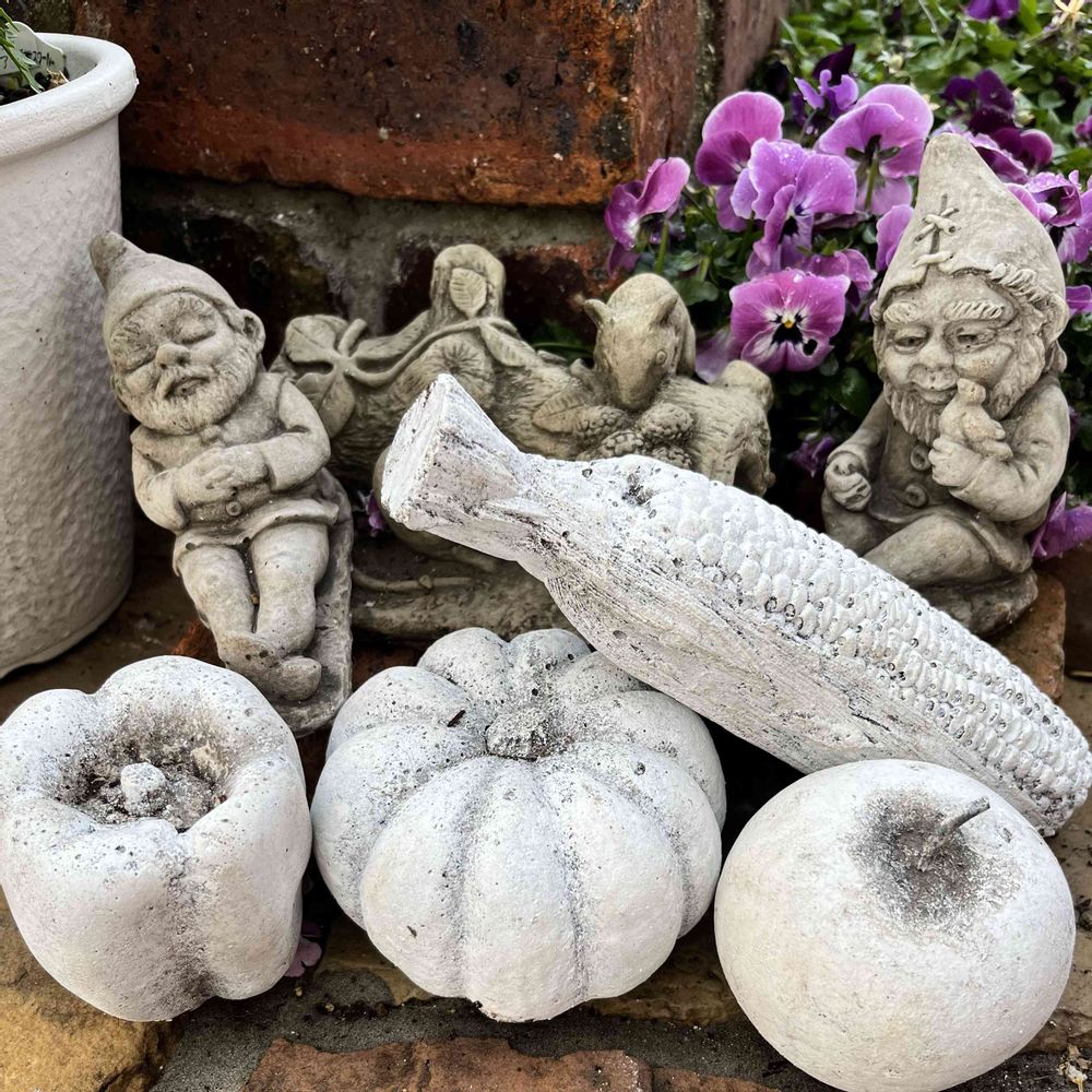 ④いつも近くだったらウチのお庭を作ってもらいたいのに〜と眺めるだけで終わっていた、モルタル造形の左官屋さんのハンドメイドのモルタル野菜達🎃(小人達は違います)