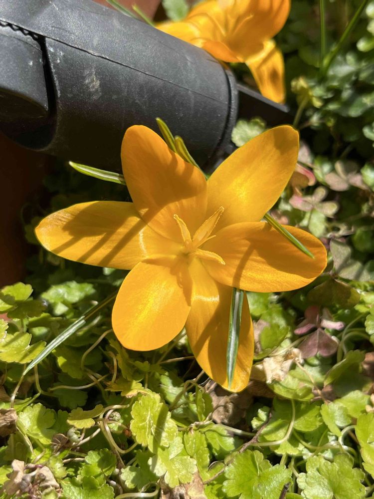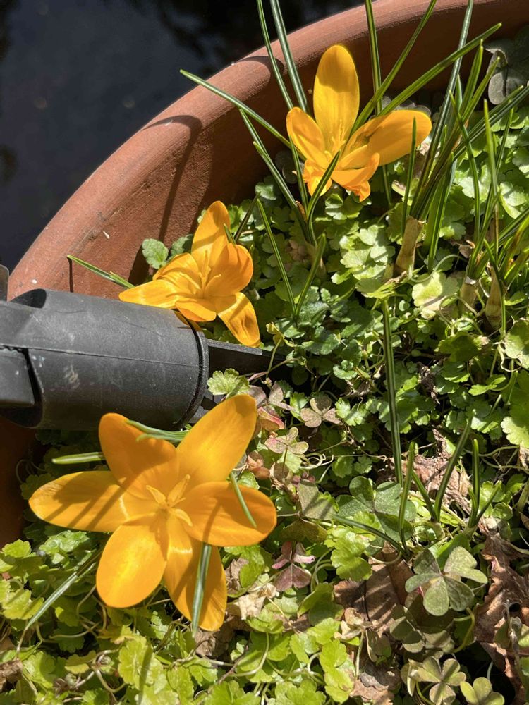 植えっぱなしで放ったらかしのソーラーライトまで刺さってる鉢からクロッカスが咲きました🫢