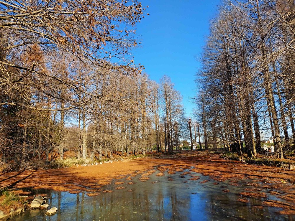 池に積もった赤褐色の葉を見ると花粉症🤧が始まりそうでしたが💦水辺のリフレクションが綺麗でした💙