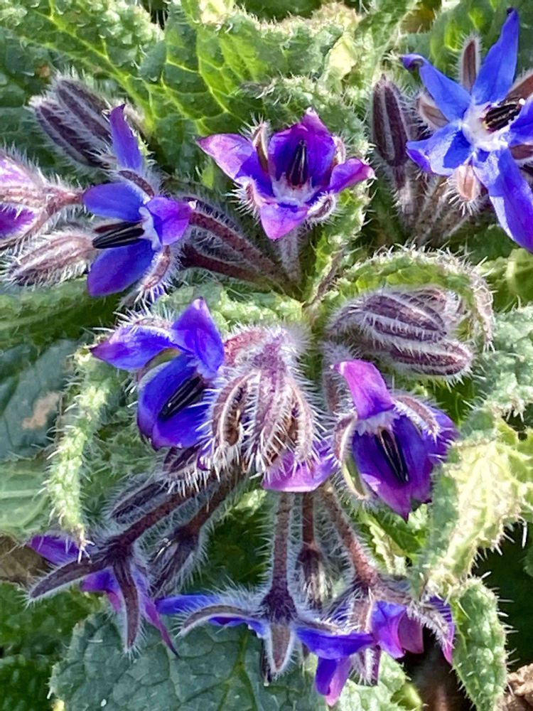 ポリジの花は聖母マリアの衣を描く時に使われたことから「マドンナブルー」と呼ばれ紫がかった青色。