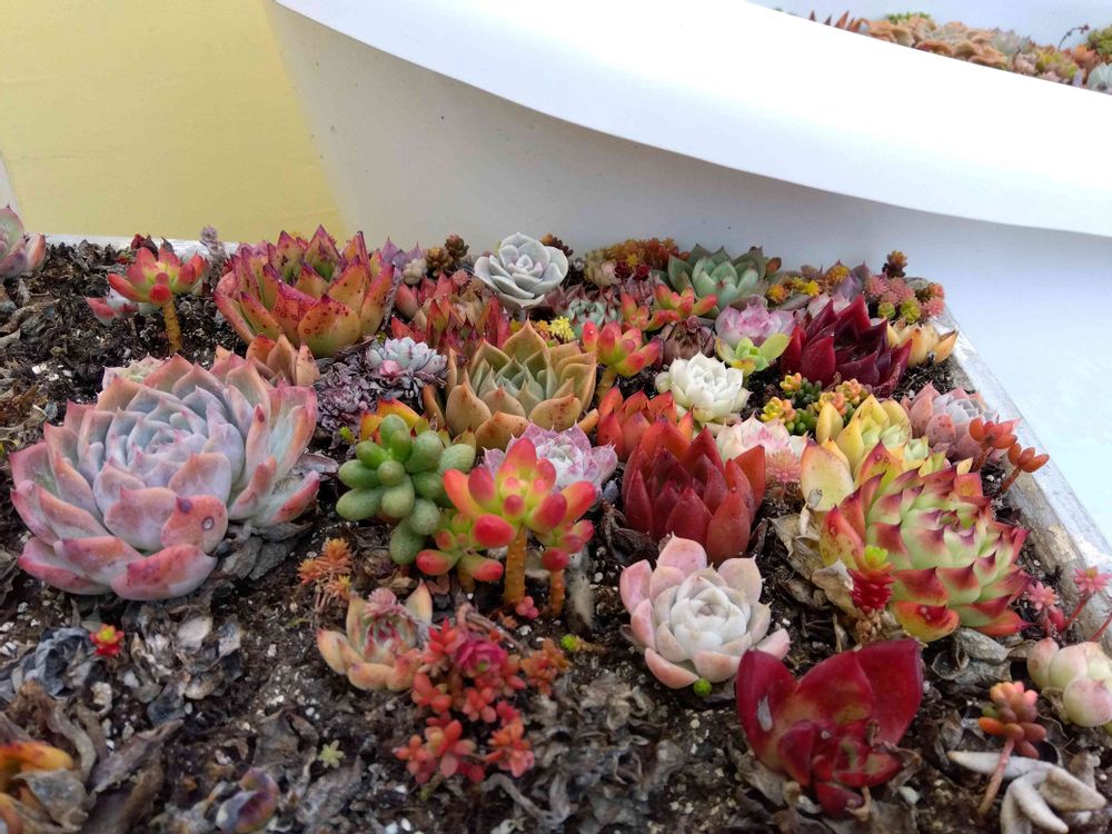 多肉友達と念願のダカフェに行ってきました。焼野原部分になってるとこもありつつ、色鮮やかな子たちも♥