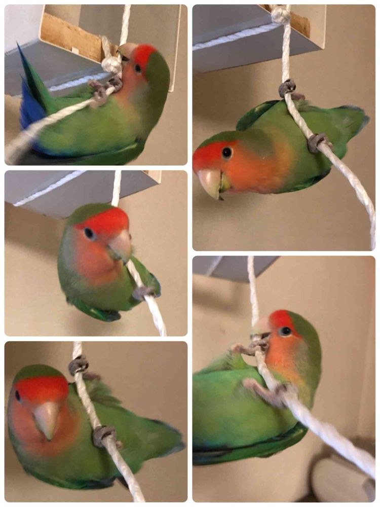 苦手な寒さもなんのその、ほっといたらいつまでも一人でぶら下がって遊んでます🎶🦜