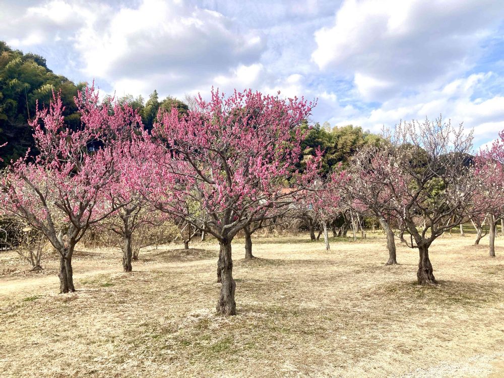 今年は春一番が早くも吹き、梅の花はそろそろ見納め。 有難い事に、ここでは紅・白・黄の3色を同時に楽しめた。