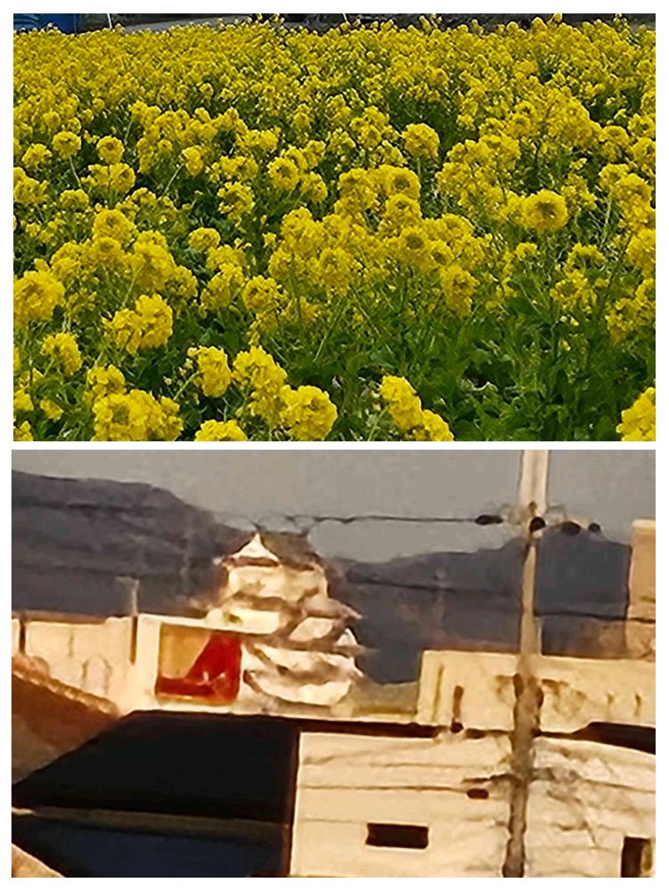 今日のお花💛ナノハナ💛です。下は、娘の家からの帰りに初めてお城が見えました💛🏯今まで気がつかなかったのでしょうね✌️