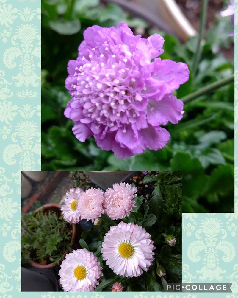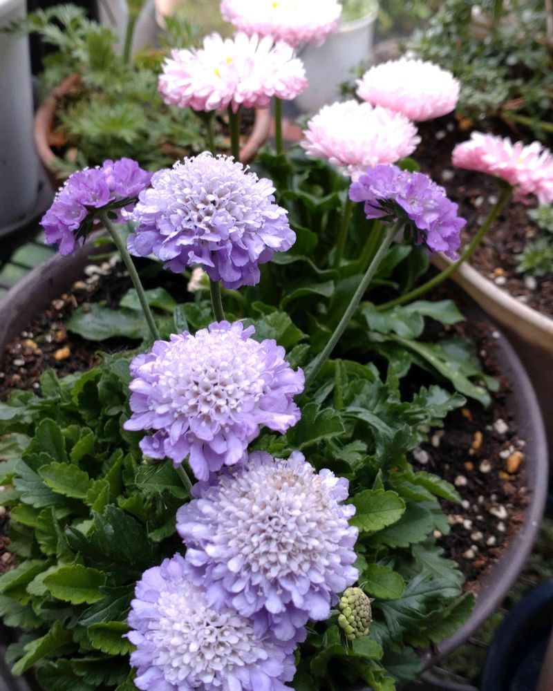 スカビオサは、Sadさんのお花を見て、買いました。チロリアンデージーも増えてきました。💜💜💜🩷🩷🩷