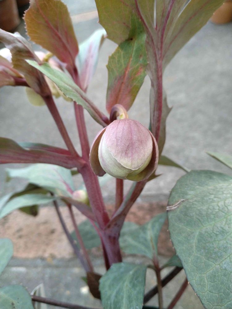 松村ナーセリーさんのカラーリーフのクリスマスローズたちの中で最初に開花です🙂🎶