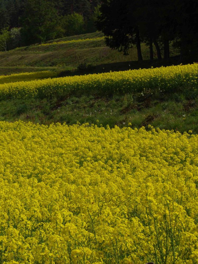 アルプス山麓の国営公園の一角で菜の花が4月下旬頃咲き誇ります👍