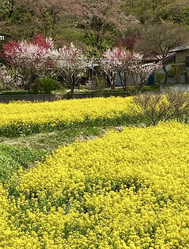 昨春訪れた福島の桃源郷、花見山公園の入り口は一面の菜の花畑でした🥰