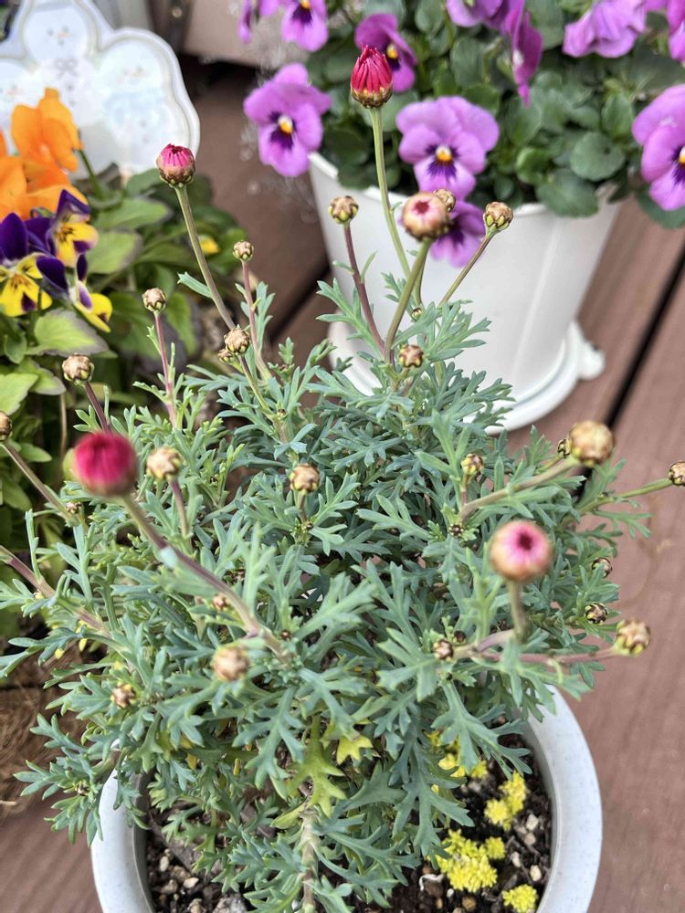 マーガレットストロベリーホイップを昨年、剪定した時に挿し芽しておいたら、ちゃんとツボミを持ってくれてます🥰
