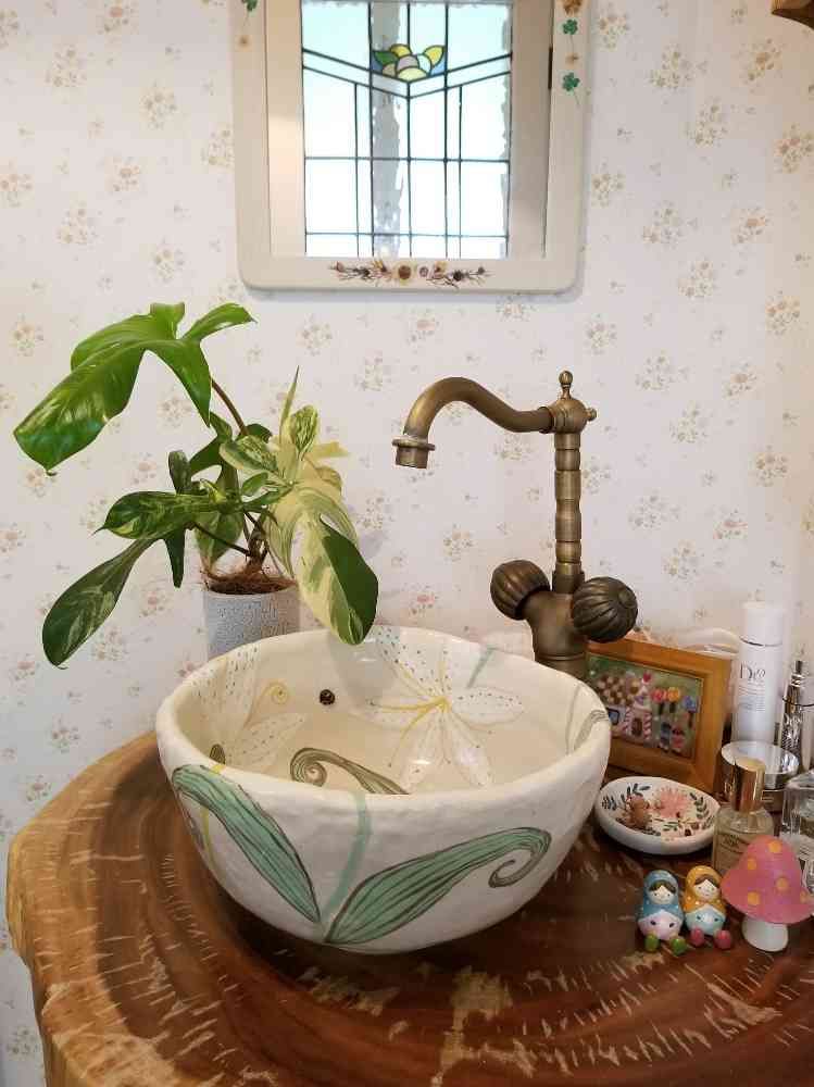 洗面ボールだね☺️ トイレにもあってそれはコスモス柄なんだょ💕✨ 信楽焼の作家さんのhandmadeだょ~🎶✨