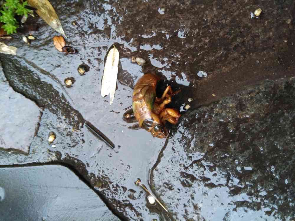 大雨のせいで成虫になれなかったのか、かわいそう🤔