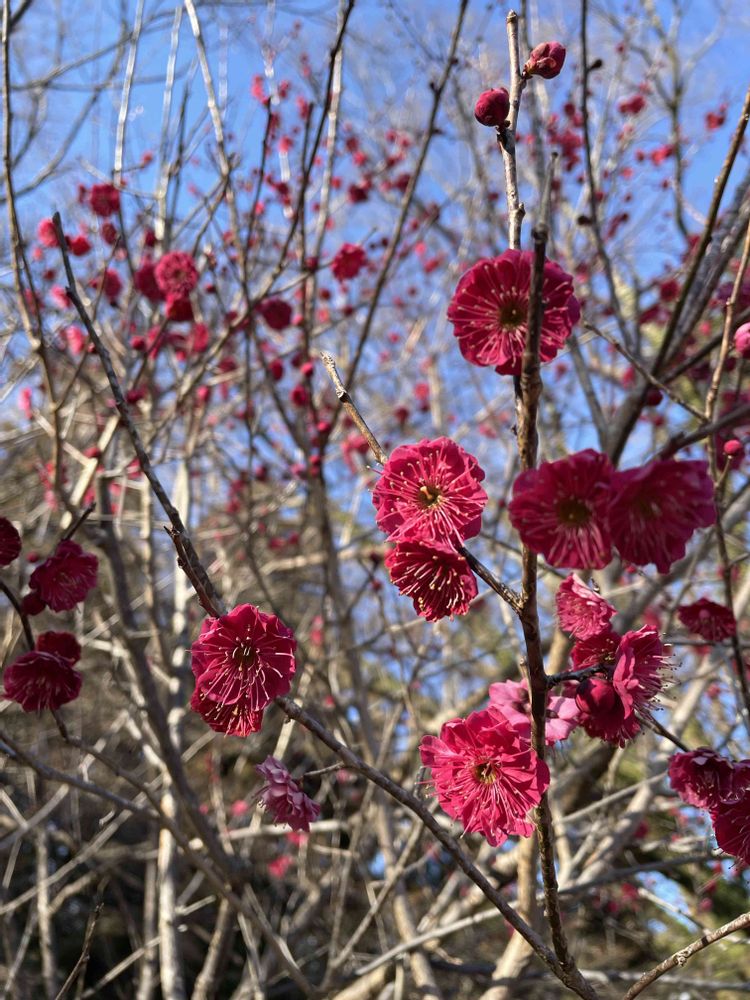 早咲きの梅が花開き、全体的には まだ蕾の木が多かった🤗