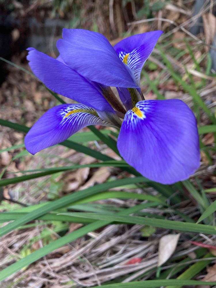 カンザキアヤメです。3つに分かれた雄しべの根元が金色で美しいです。草丈は25cmぐらい。昨日、近所の緑地で🤳