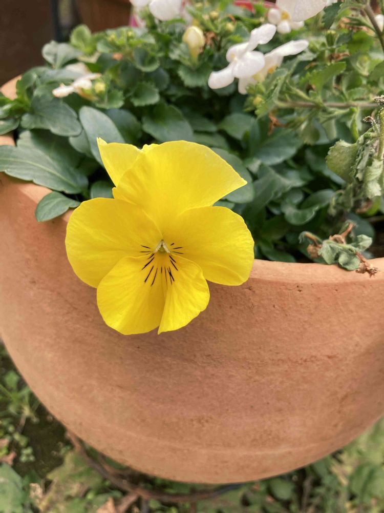 やっぱりお花を楽しまれているんですね〜🥰一つ咲いている黄色のパンジーも目を引きますね💛😄🎵