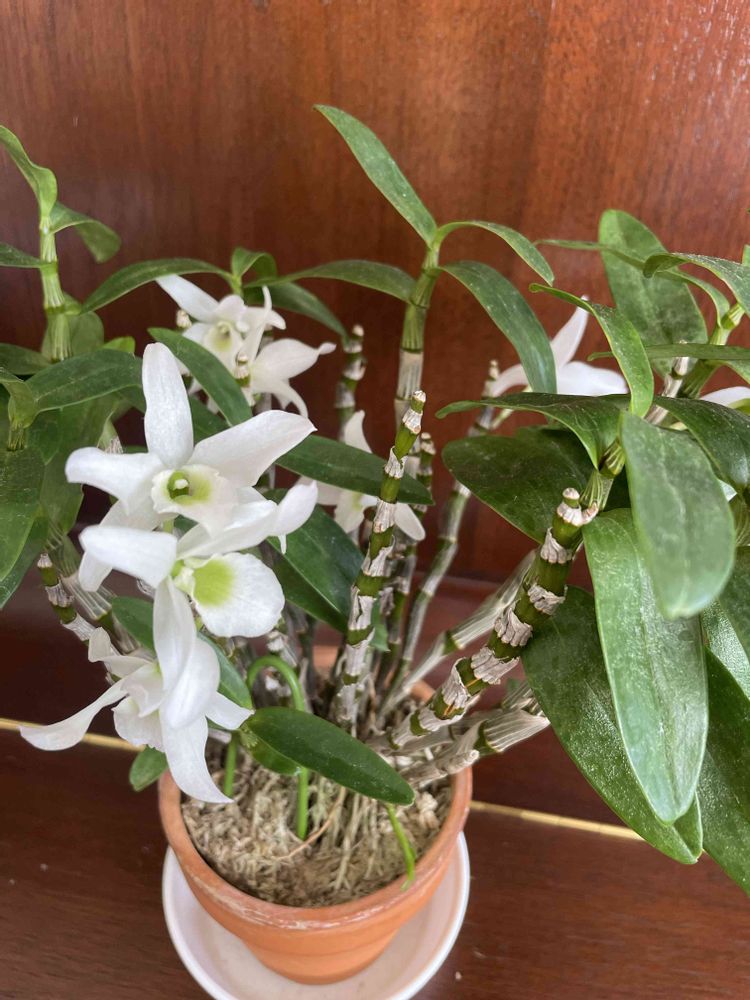 ウチにも何年も前から居るデンドロビウム。お花が咲いた事なく…たまたま外壁塗装で雨晒しの場所に移動したら、みるみる葉っぱが元気になり、お花を咲かせるようになりました✌️☺️