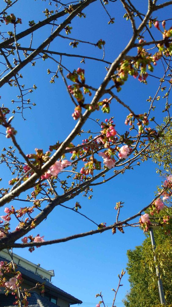 ピンクのカワヅザクラが綺麗です。大日公園より