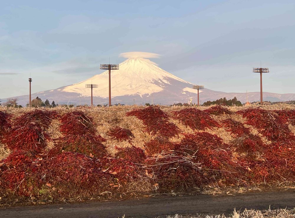 アッコちゃんさんが撮られた笠雲と手前の赤い所はなんでしょう 芝桜の葉が紅葉して居るのでしょうか?😅