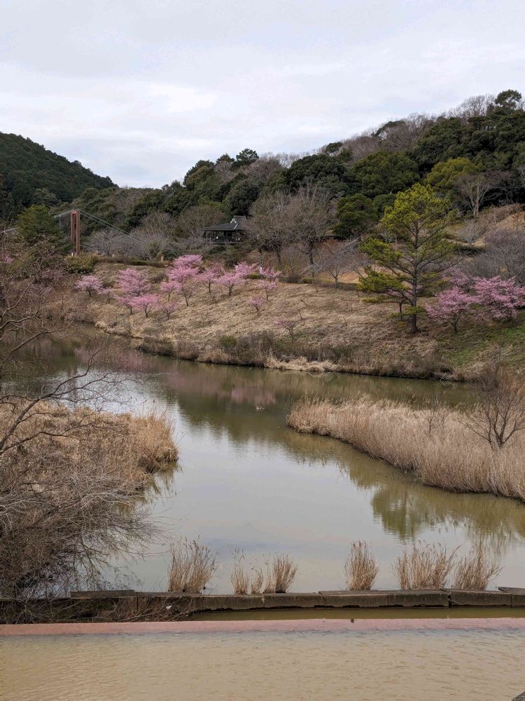 公園の河津桜と、菜の花と、お散歩ちゃんです😄曇りでしたけど、風がなく、いい日なので、たくさんの人がいました😄