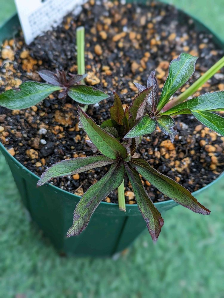 もらった黒系のクリスマスローズは形がもっとギザギザしてたんよね🤔