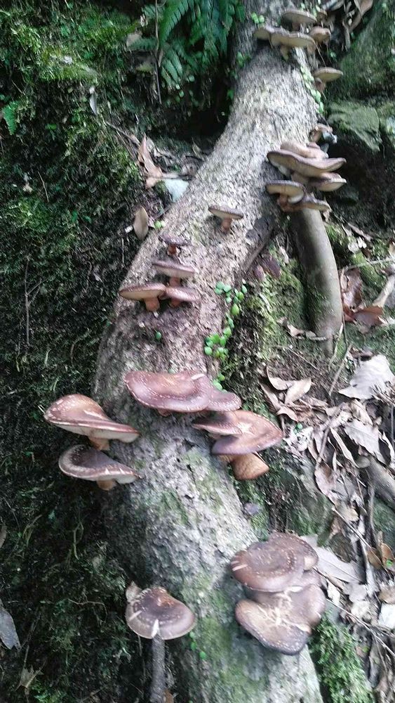 台風で折れた太い枝に、シイタケのようなキノコがたくさん生えていました。自分ではシイタケだと思うのですが・・・どうでしょうか🤔?天気が明日までは良いのでシイタケであれば採りに行こうと思います。
