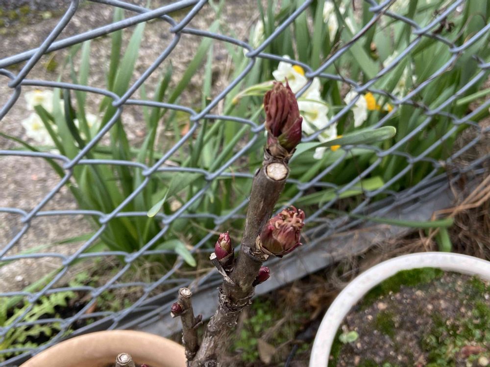 ここ数日の4月のような暖かさで、一気に冬芽が解けてきた