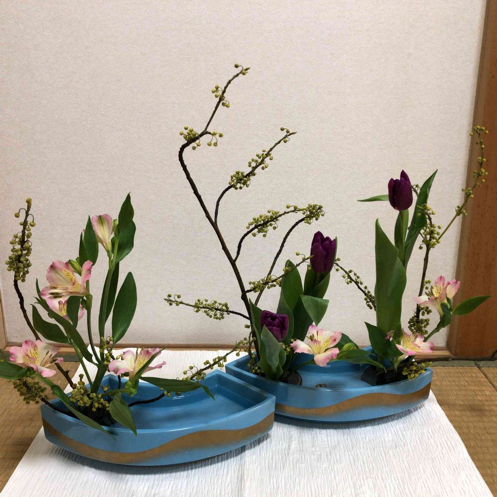 本当は、くろもじは傾斜に生ける方が良いのですが…💦