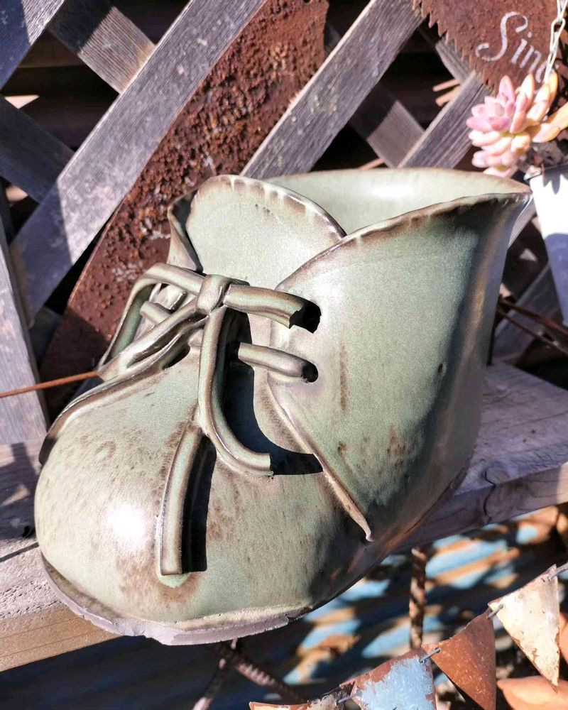 暗くなってしまい、お友達のお庭に長く長く眠っていたシューズ型プランター、古道具屋で出会ったポンプはまた今度💦