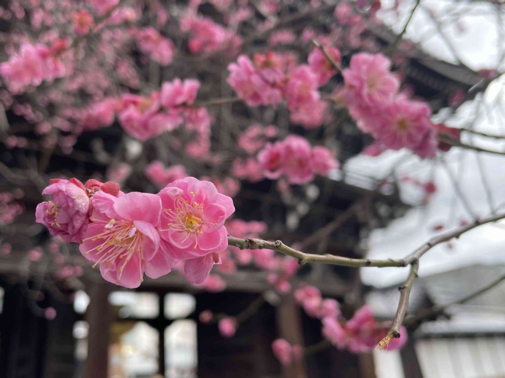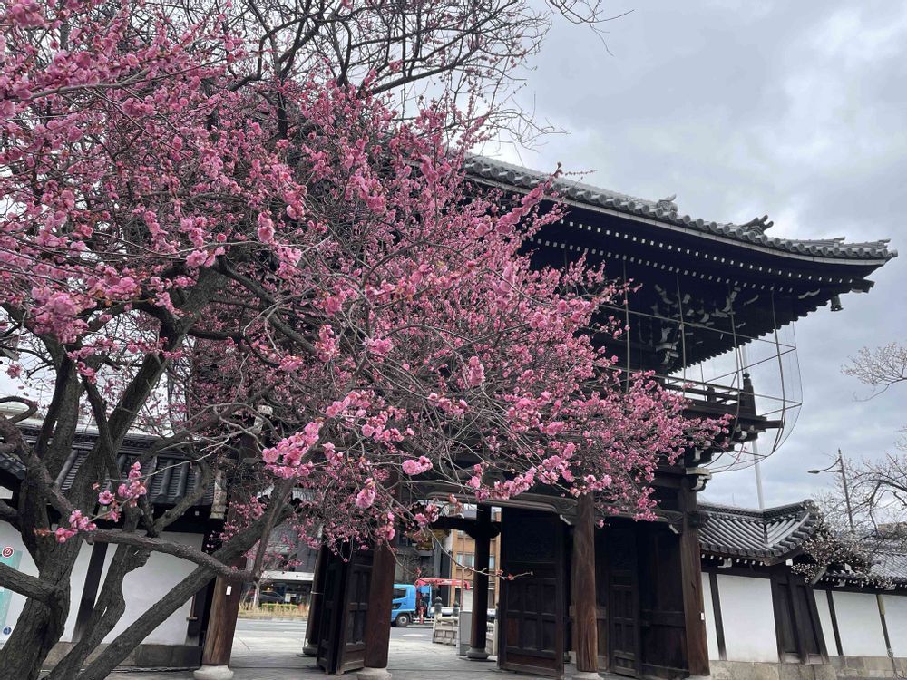 興正寺山門と梅🌸🤍が良い雰囲気でした✨