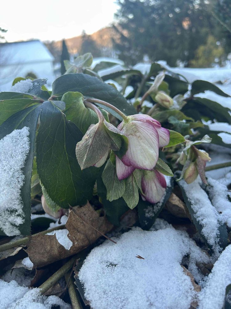 雪の中懸命に咲くクリスマスローズが美しいです🥰