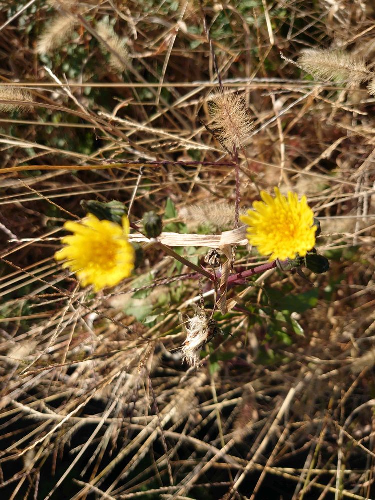近くのウオーキングトレイルで冬に咲いていた、ハルノノゲシ(12月撮影)
