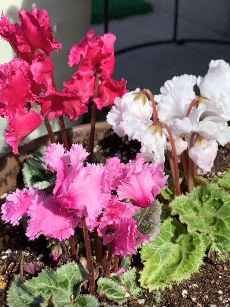 強いと思いきや、他の花と寄せ植えにすると水をやりすぎてダメにしちゃうので、今年はほぼシクラメン同士でしか植えてません💦