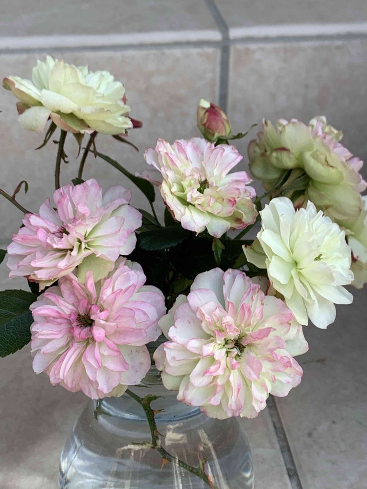 2枚目はずっと咲いてるミニバラグリーンアイスさん。疲れちゃうかなーと切り花にしました🤗💕