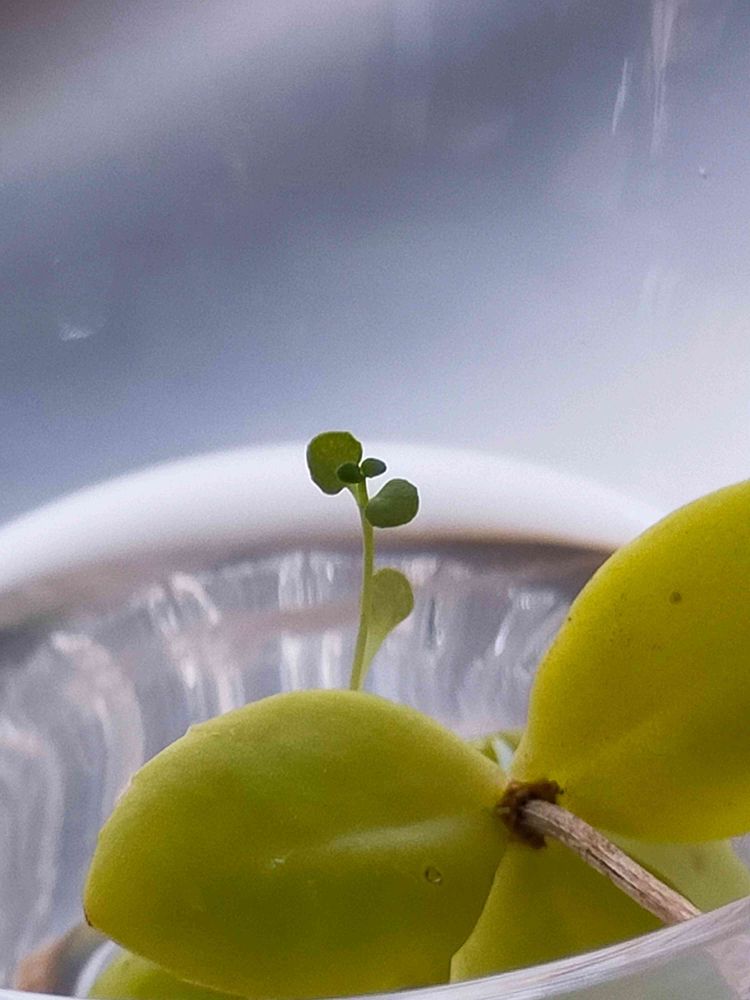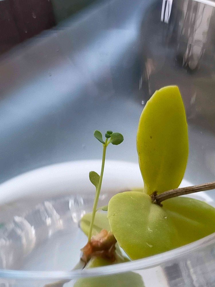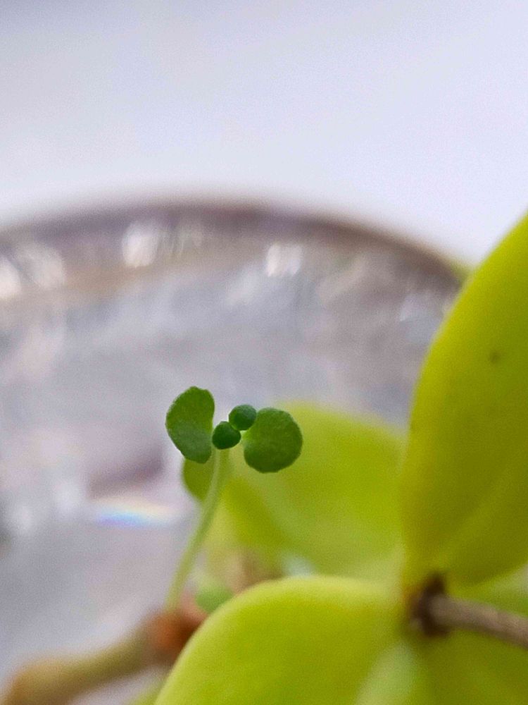 使わないワイングラス🍷にずっと入れてたら根が出て、🌱が出て…愛おしい♥