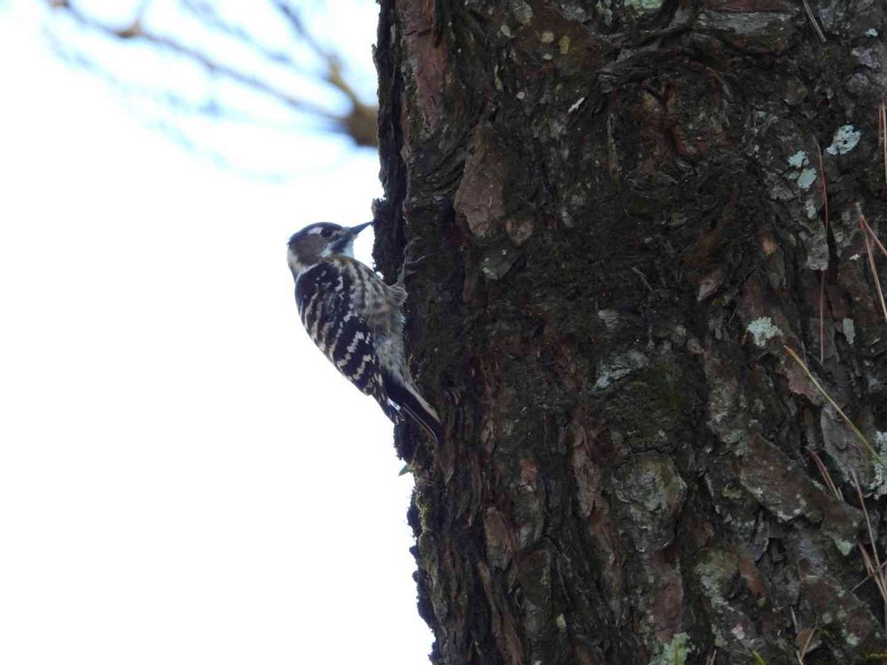 野鳥のコゲラ お食事中🍴😋🍴松の木を一生懸命つついてました。🐦