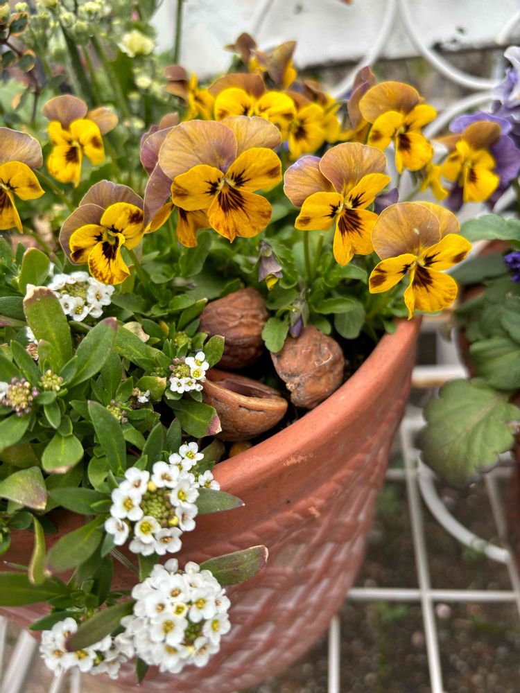 今年は、も?寄せ植えを何鉢か作ってます。まだまだ、センスを学習中。沢山の種類の苗を買えば、植えた時からもりもりになるけど、1つ2つ足りないので、我が家の寄せ植えは、生長してもらって、馴染み待ちです!全部好きな花ばかり〰️。