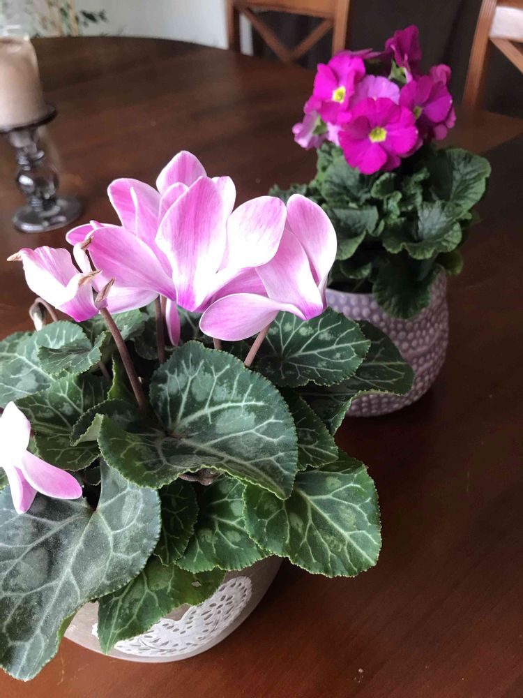 これが友人から貰った花達です。ジュリアンはテラスに出しました。ピンクの色が可愛い💕