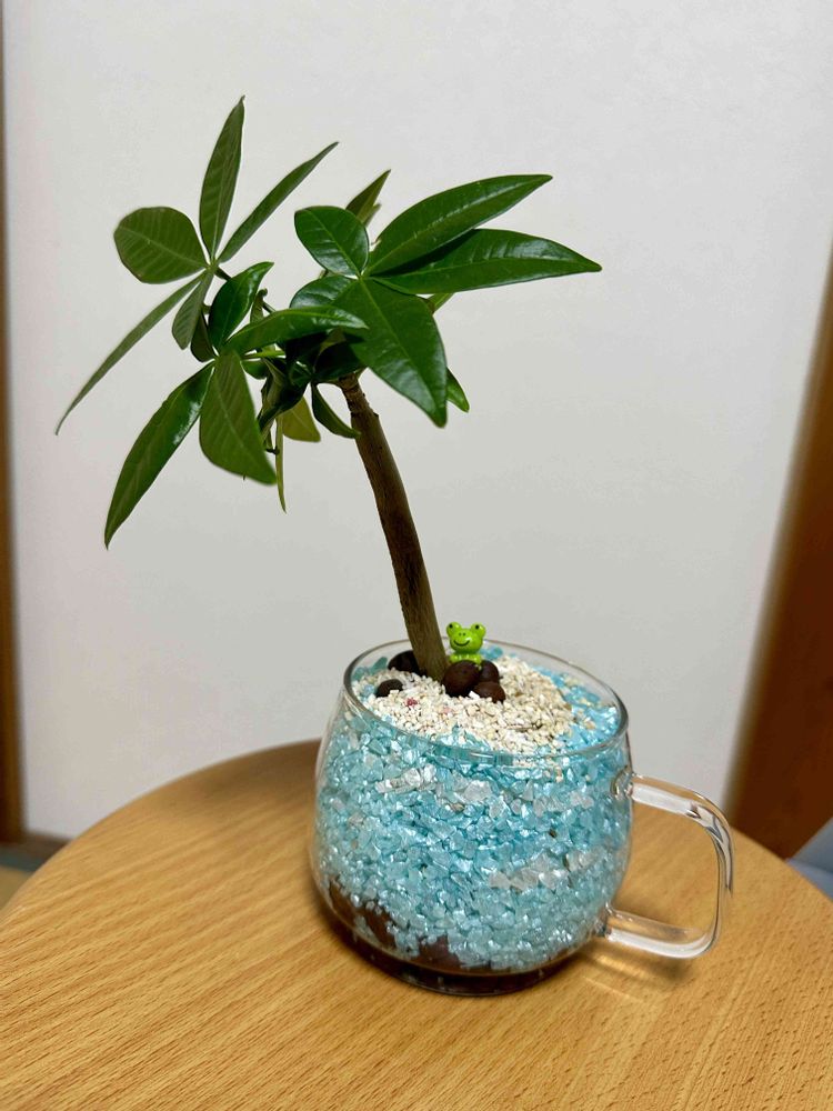 ありがとうございます。ハイドロカルチャーを埋めて、ガラスサンドでお化粧。