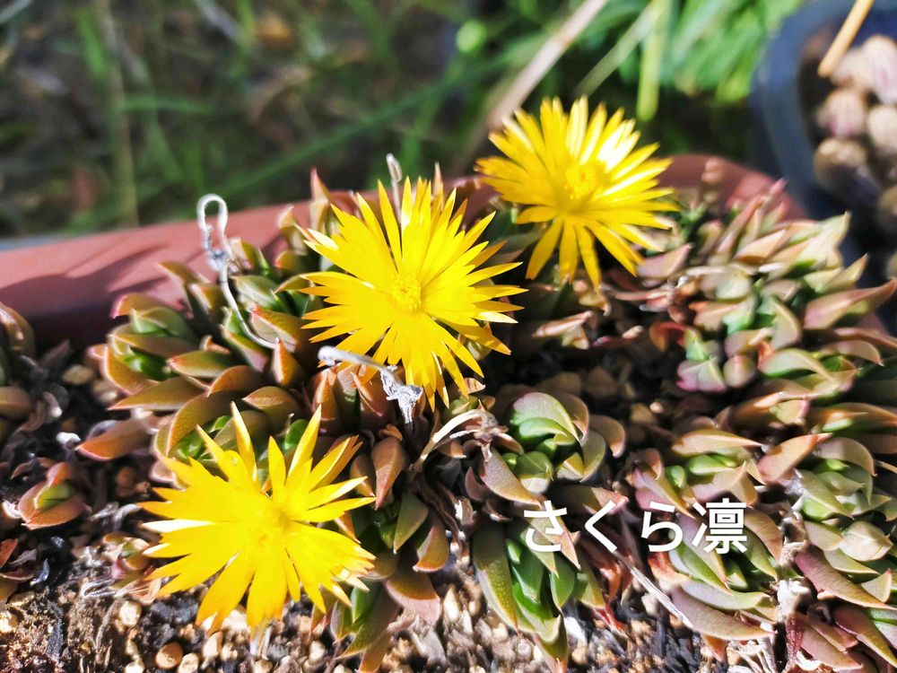 ベルゲランサス (照波・三時草)が冬の風に負けずたくましく黄色い花を咲かせてました。