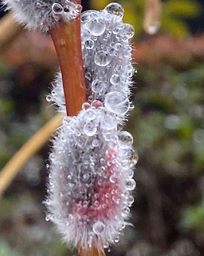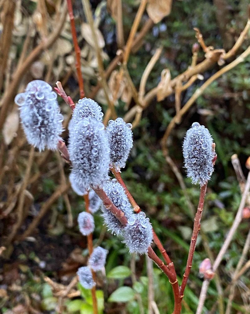 💧霜のついたピンクネコヤナギ