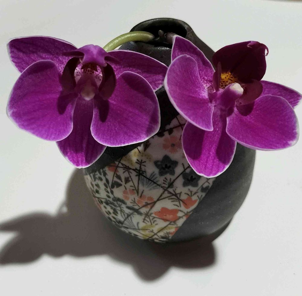 このミディ胡蝶蘭そろそろ終わりそうだったので…一輪挿しにキッチンに🤗