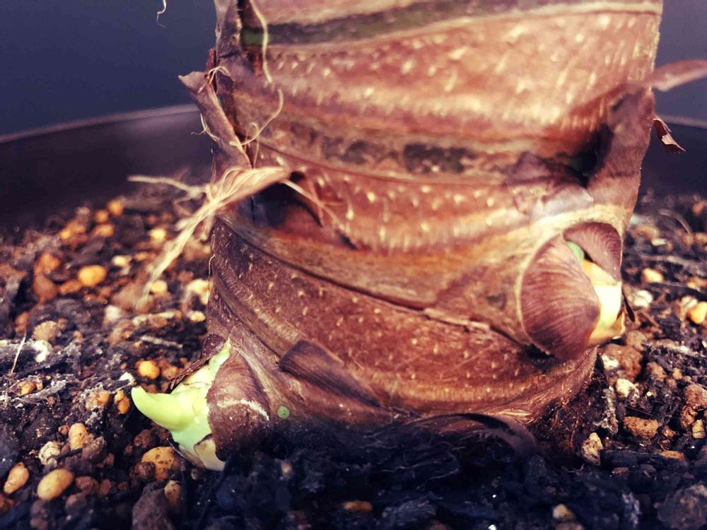 根茎の下部から、ニョッキリ出てきた新芽の写真をUPで。🌱
