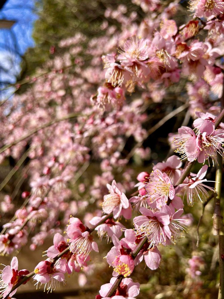 隣のピンク🎀のしだれ梅も満開!今日の☔️が残念です😭