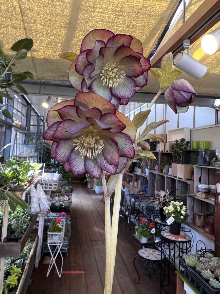 音ノ葉のお値下げコーナーから半額で連れ帰りました。綺麗な色のクリスマスローズは沢山ありましたが、これともう一鉢だけがダークな色合いでした。迷った末にこちらにしました❣️